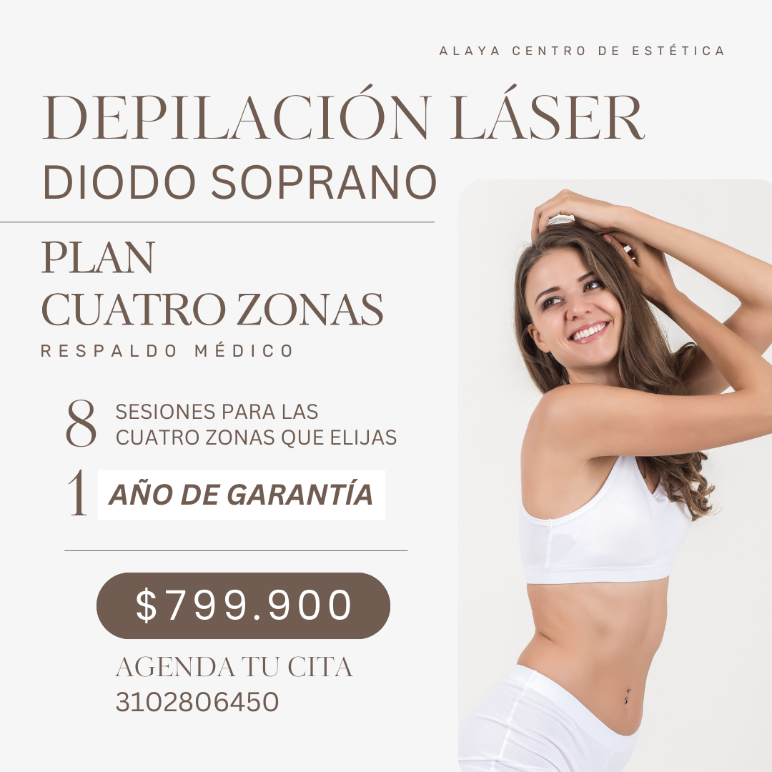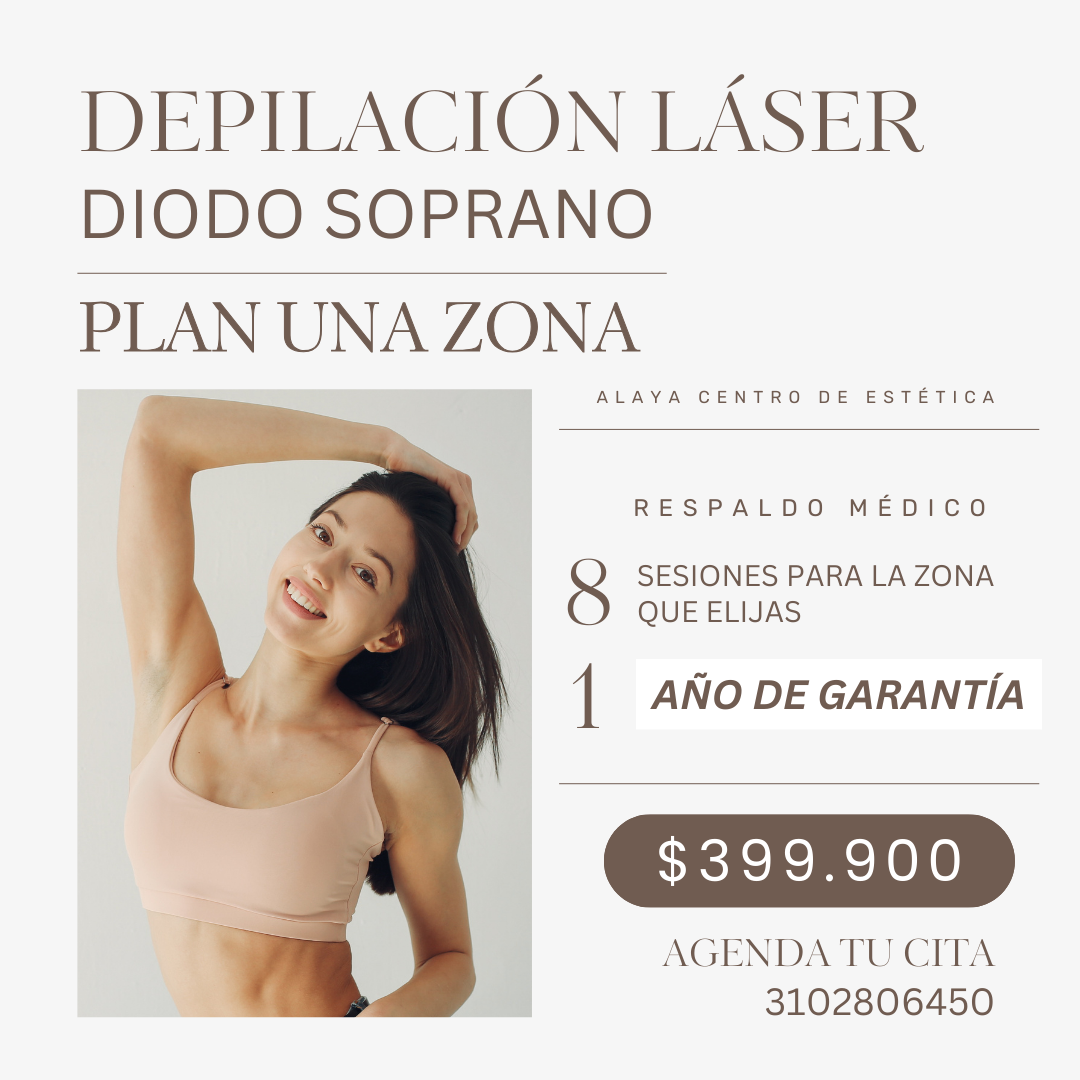 Descubre la magia de nuestra depilación láser con la tecnología Diodo Soprano! Esta maravilla de la ciencia, al unirse con la radiofrecuencia, no solo reduce el vello desde la raíz, sino que también mima tu piel, dejándola hidratada, protegida y más clara. Y lo mejor de todo, es perfecta para todos los tipos de piel.